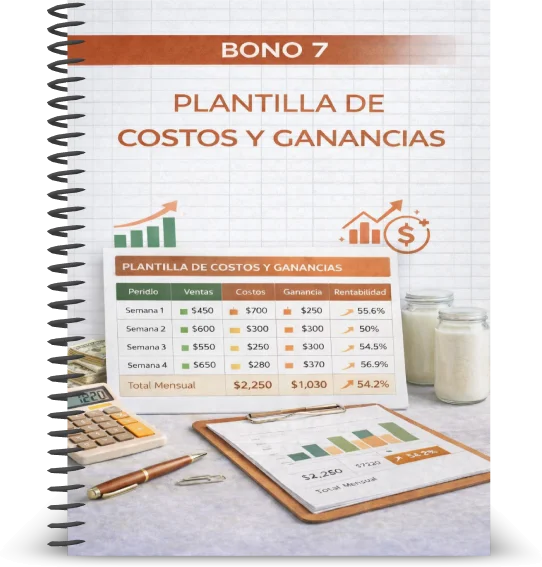 Incluye un paso a paso práctico y plantillas listas para usar, para que sepas qué hacer en cada etapa, cuánto producir y cómo vender con más seguridad, sin desorden ni dudas.