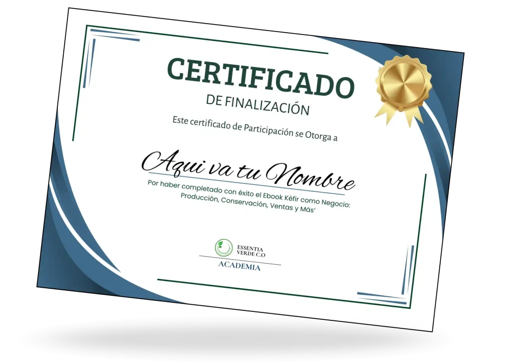 Certificado digital personalizado que respalda tu proceso como productor de kéfir enfocado en la venta.
